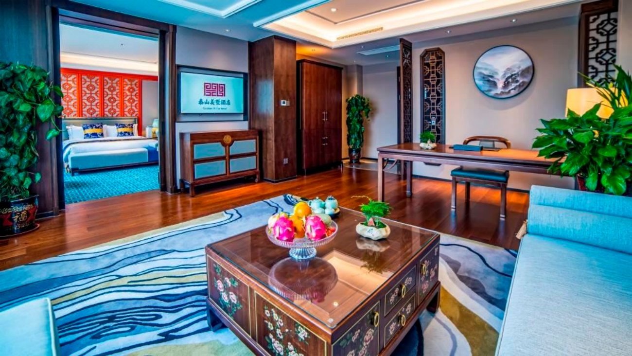 酒店采用中式建筑處于半山之上,位于天平湖獨有的地勢,保證了整個酒店的觀景效果。酒店總占地面積240畝,擁有別墅52棟,每棟別墅均配備獨立的花園,周邊環湖而居,景色怡人,必將成為您在泰安打卡的網紅圣地!