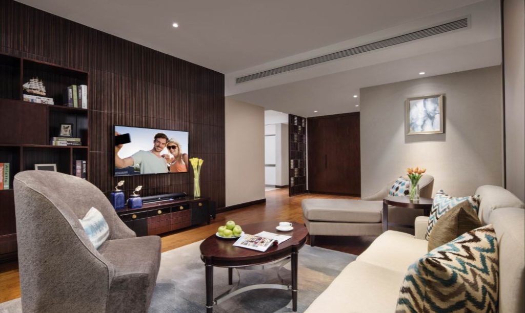 天津雅詩閣泰達MSD是由4棟建筑組成綜合型服務公寓,共有224套單房公寓、一房及兩房式奢華雅致的公寓套房。單房公寓可以 與兩房式公寓聯通組成一間三房式公寓,從而為您提供更大的居住空間。每間套房均配備設施齊全的廚房,寬敞的客廳和獨立用餐 區,以及高品質的家庭影院系統,讓您盡享頂級居家生活。