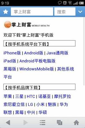 ◇ 在掌上財富下載界面,選擇下載相關(guān)的手機品牌型號