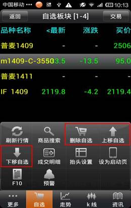◇ 上移自選:點(diǎn)擊“更多”--“上移自選”,快速的將自選商品的位置上移一個(gè)位置。