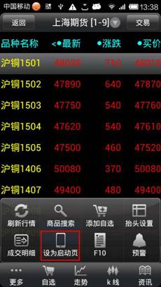 品信息,點(diǎn)擊“更多”可以商品搜索,刪除自選、上、下移自選,成交明細(xì),抬頭設(shè)置,