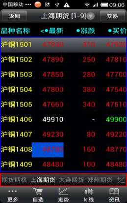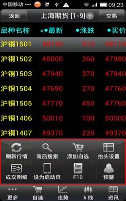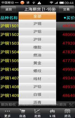◇ 商品搜索:點擊“更多”--“商品搜索”,可以快速切換到需要查看的品種信息。