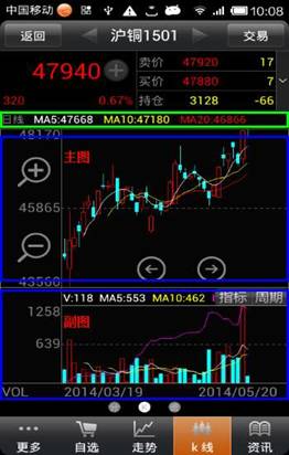 ◇ 動態(tài)信息:上方動態(tài)數(shù)據(jù)區(qū)域可以查看到實時更新的價格、漲跌、買/賣價、持倉等數(shù)