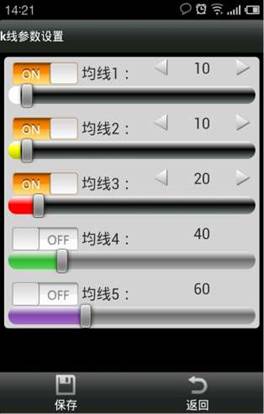 軟件默認顯示 3 條 K 均線,最多可支持 5 條均線,設置完成需點擊“保存”。